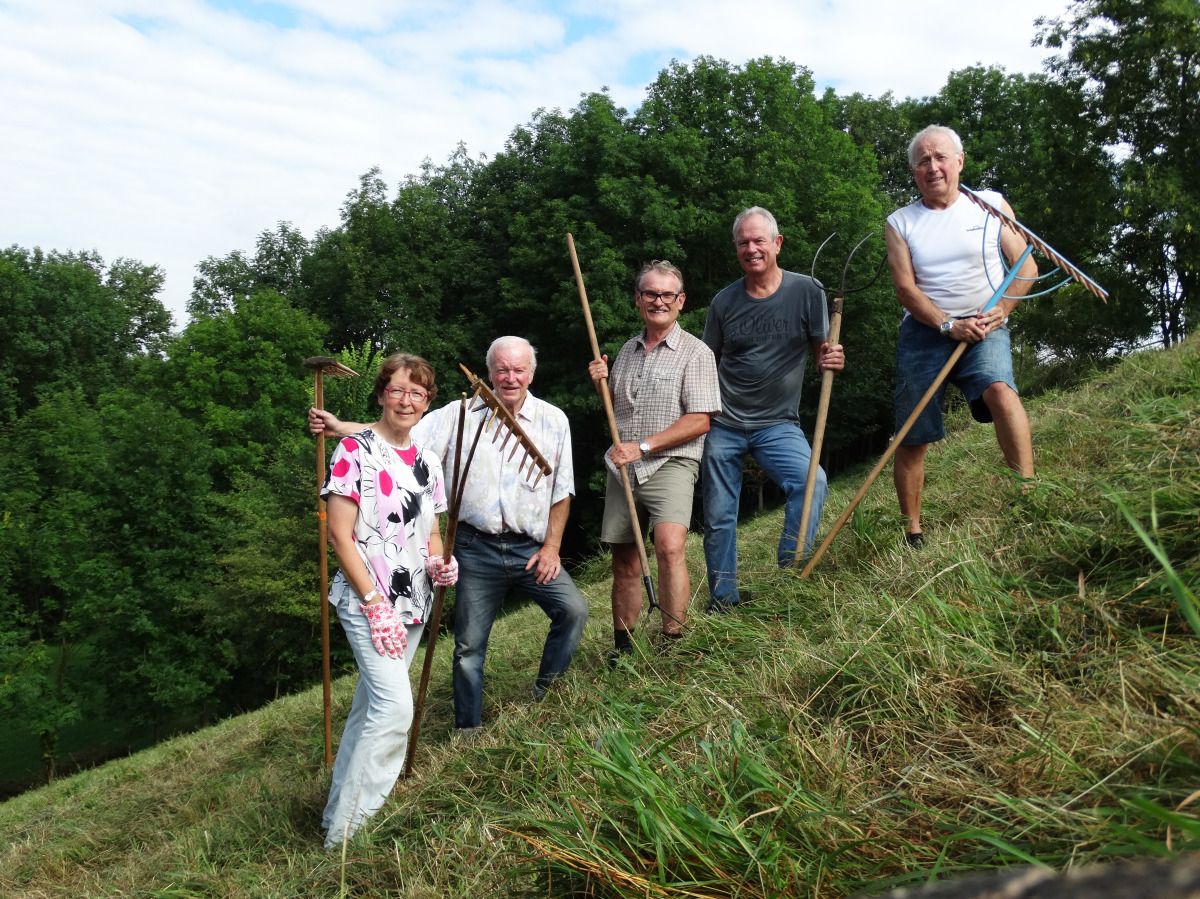 Bildunterschrift: Nach Bergbauernmanier wurde der steile Hang mit der Hand zusammengerecht / Dick