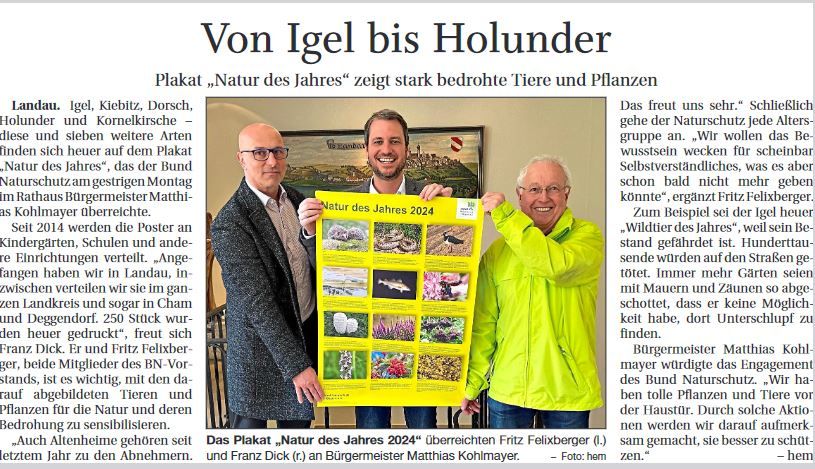 Das Plakat stellt zusammengefasst alle von verschiedenen Organisationen gewählten Repräsententanten von Pflanzen oder Tieren, die im jeweiligen Jahr stärkere in den Fokus gerückt werden. Am bekanntesten ist der "Baum des Jahres" und der "Vogel des Jahres". Aber auch andere Gattungen machen mit.