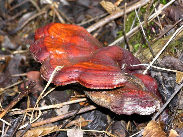 Glänzender Lackporling fotografiert am 12.4.06 von F. Meindl an einem alten Eichenstumpf in der Erlau. Der glänzende Lackporling wächst im Vorfrühling. Er ist im Landkreis selten. Früher wurde er als Tischschmuck verwendet und hat auch heute noch in Ostasien große Bedeutung in der Medizin.